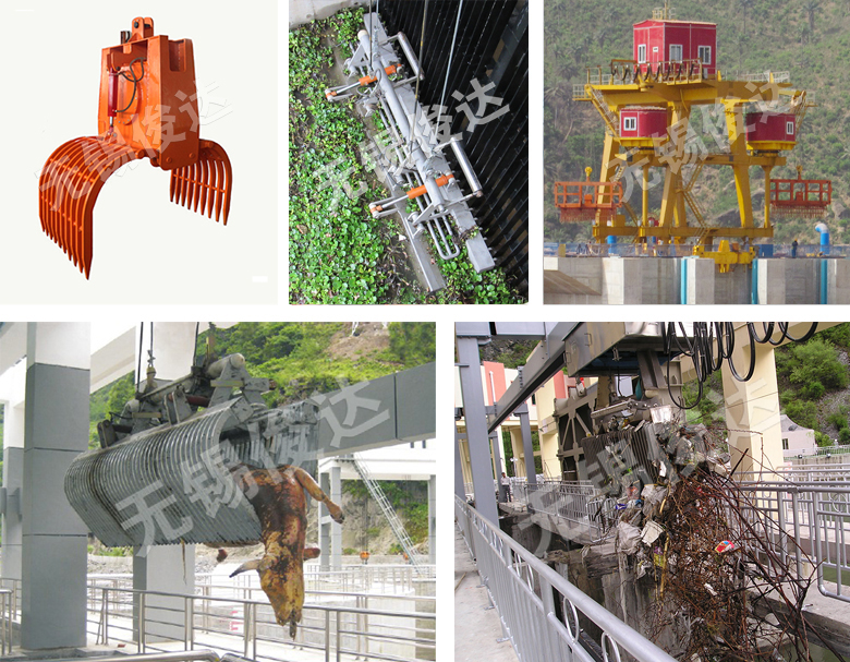 Grab Bucket Device:for grabbing floating debris in water and removing the garbage before the trash rack.