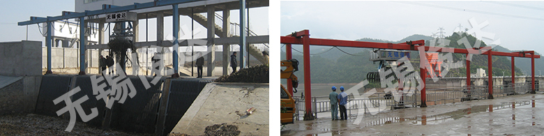 Electric control systemElectric control mode (C): Manually operate through button box switch; Remote control mode (B): Complete each working process through the remote control system; Full automatic control mode (A): Perform through the time or liquid level difference system; Loaded pulley The loaded pulley (moving vehicle) includes all the drive equipments of the trash cleaning machine. Hoisting reducing motor: control the rise and fall of the grab through the roller of the cable. Grab device: control the open and closed status of the grab through the hydraulic system power. Traveling system: control the horizontal operation of the pulley through the drive of the speed reducer. The grab is suspended below the moving vehicle, which is installed with particular tension system for balance and to ensure the stable and reliable travel of the moving vehicle. Support, rail The structure of the support and rail is mainly to satisfy the travel requirements of the loaded pulley. The direction trace of the track could maximally meet the requirements of site space. The support guide rail could be installed either on the ground or wall, to save the civil work investment. The track directly bestrides on the above of the intake and all the electric cables are laid in the track. The whole appearance structure is simple and clean and the equipments are stable, reliable, and easy for maintenance.