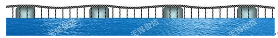 河寬10公里內,浮箱間距小于50米,橫拉鋼絲繩的位置應略高出水面即可。電極陣聯結在浮筒上,浮筒固定在設計斷面水面上 。